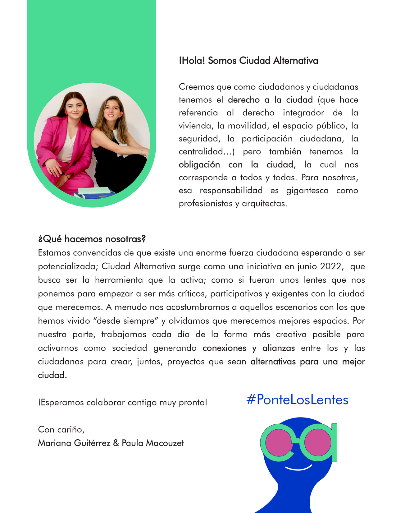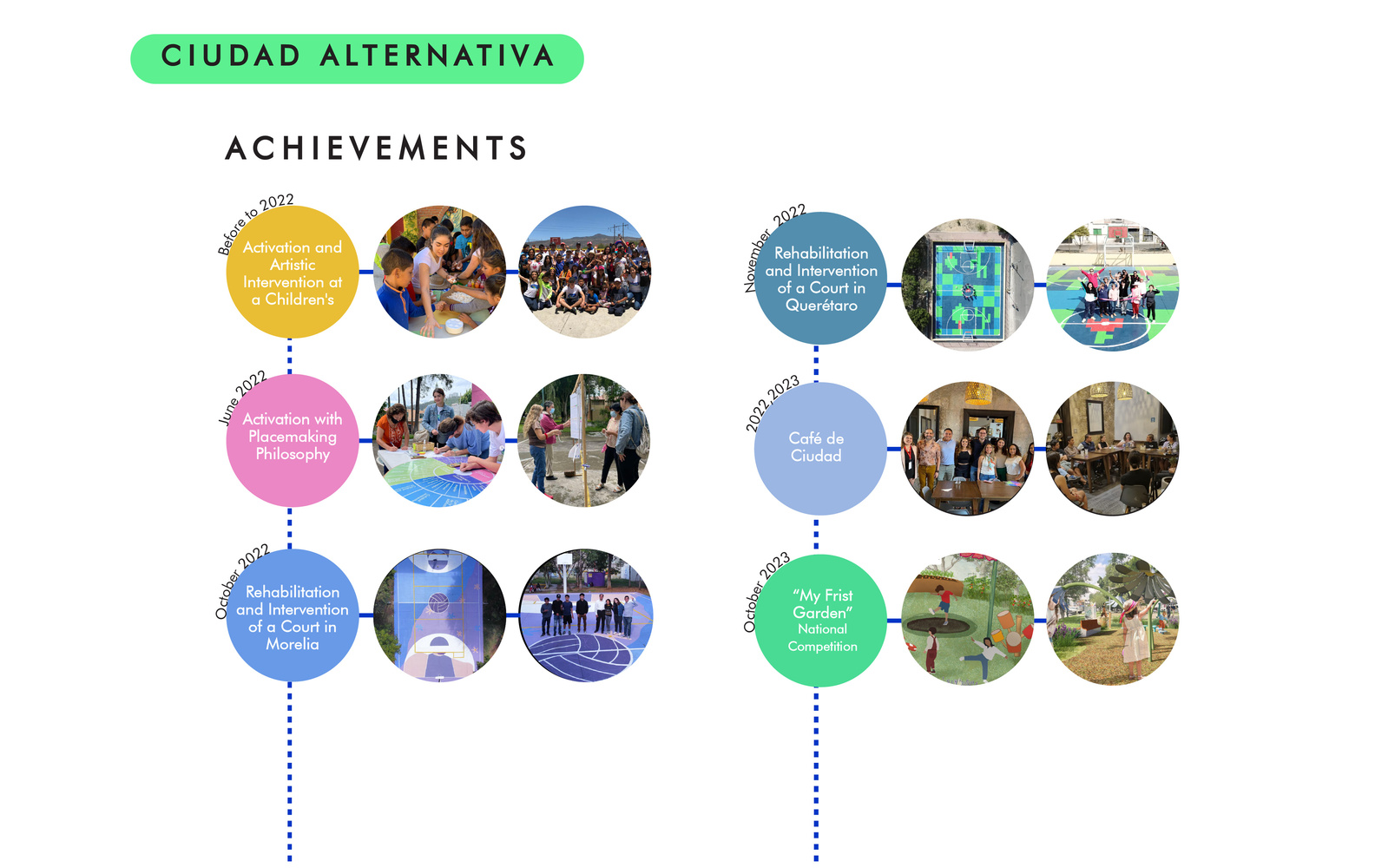 Ciudad Alternativa was born to connect private, public, and third-sector organizations to enhance our public spaces and rescue green areas in our city, increasing opportunities for all its citizens, enhancing the experience in our city.