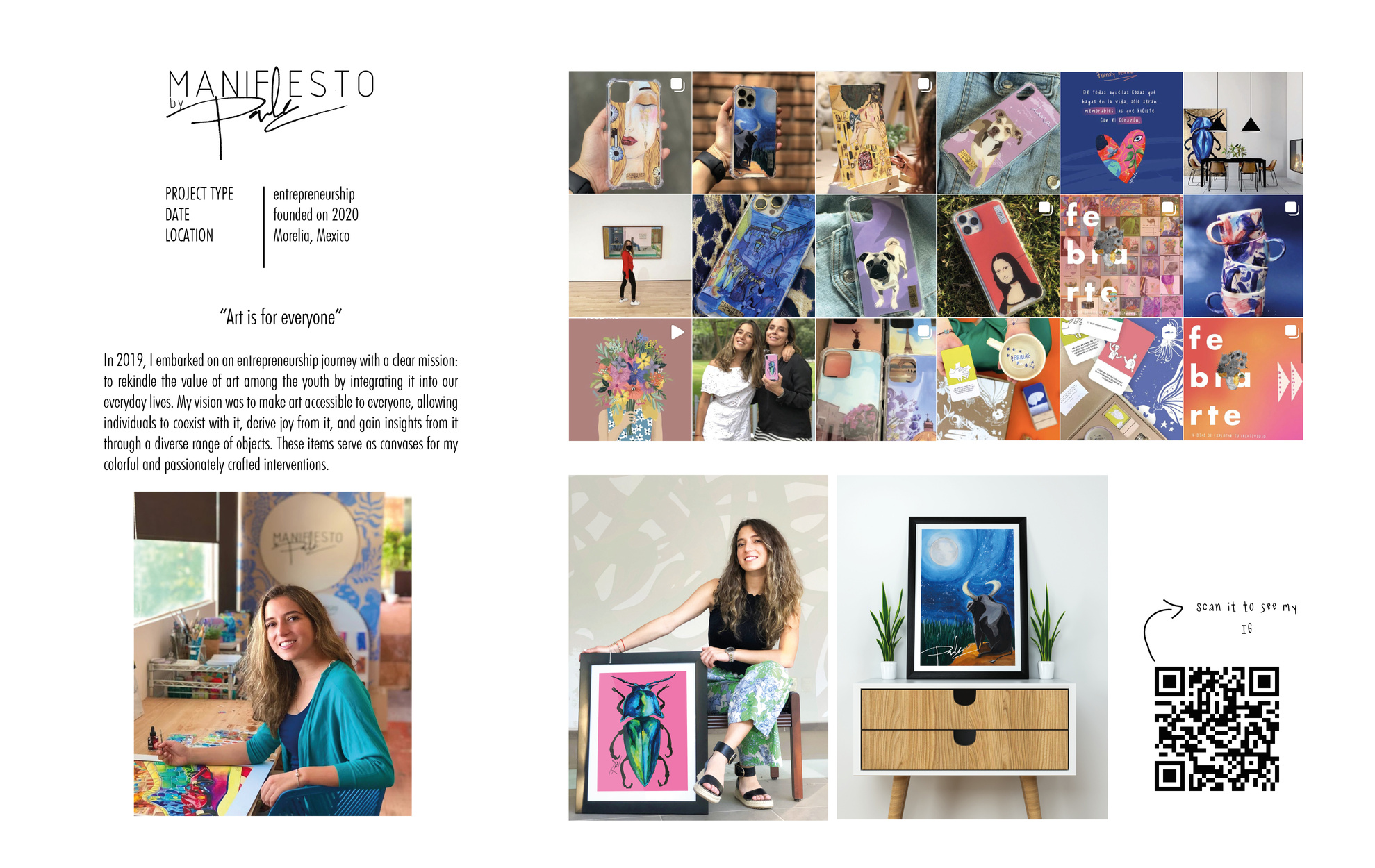 II strongly believe in the impact of art in public spaces. Creating an Easter collection in 2022 for Morelia’s primary mall was an honor. Despite the mall’s semi-private nature, the visitor response to my real-time painting highlighted the urgent need for such art in our city. Visitors shared how a phrase they read on my collection or a painting they connected with could brighten their day. I loved these invaluable insights from the visitors, who even told me stories about their art-loving relatives.