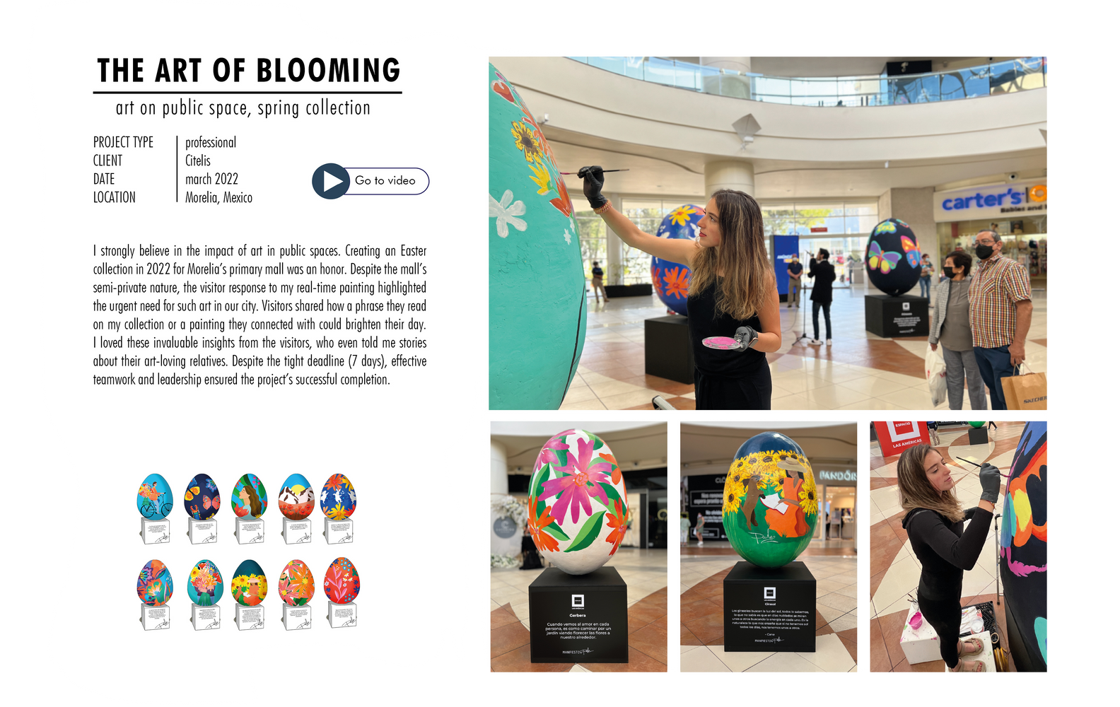 II strongly believe in the impact of art in public spaces. Creating an Easter collection in 2022 for Morelia’s primary mall was an honor. Despite the mall’s semi-private nature, the visitor response to my real-time painting highlighted the urgent need for such art in our city. Visitors shared how a phrase they read on my collection or a painting they connected with could brighten their day. I loved these invaluable insights from the visitors, who even told me stories about their art-loving relatives.